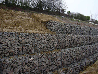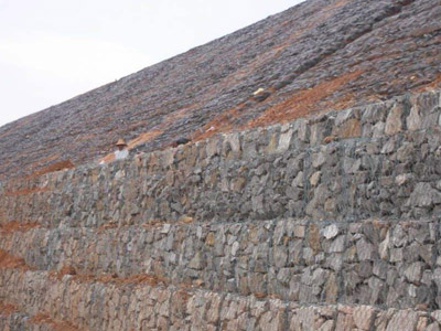 石籠網(wǎng)擋墻由大規(guī)格六角網(wǎng)聯(lián)結(jié)而成,施工中只需將石塊裝入籠中封口即可。
