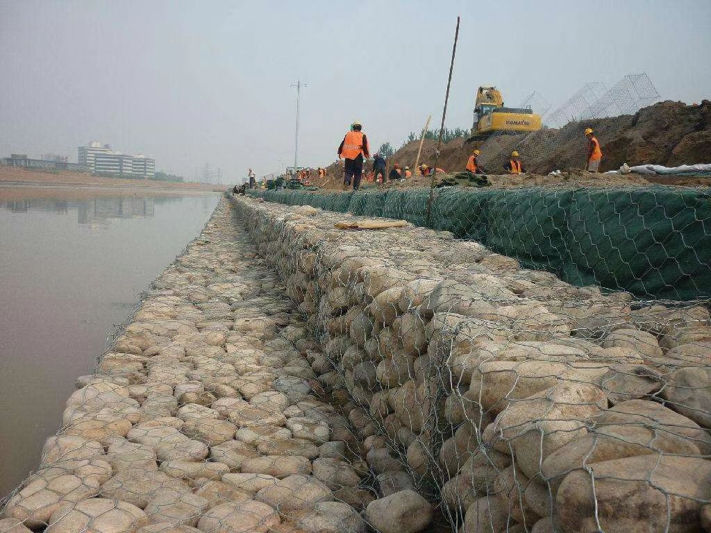 石籠網(wǎng)是由具有延展性的鋼絲或許包覆PVC的以上鋼絲運(yùn)用機(jī)械織造而成,依據(jù)ASTM A 975和EN10223規(guī)范,所運(yùn)用的鋼絲直徑依據(jù)工程設(shè)計(jì)需求而不一樣。通常介于2.0-4.0mm之間,鋼絲的抗拉強(qiáng)度不少于38kg/m2,金屬鍍層分量通常高于245g/m2石籠網(wǎng)片的邊際線直徑通常要大于網(wǎng)線直徑。其雙線絞合有些的長度不得小于50mm.以確保絞合有些鋼絲的金屬鍍層和 PVC鍍層不受損壞。